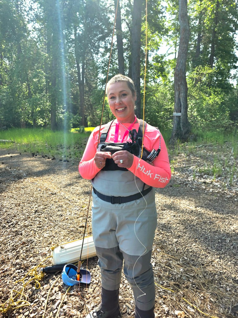 Peg assigned each of us a participant. Alison was my fishing buddy for the morning. Alison and I work together at Pullman Regional Hospital, and I had seen her a few weeks earlier and discovered she was going to be on the trip. Alison is a positive, omni-competent person who runs the External Relations Department, and she has breast cancer. We both started at the hospital at around the same time and I was excited to help her learn to fly fish and hear more of her story.
